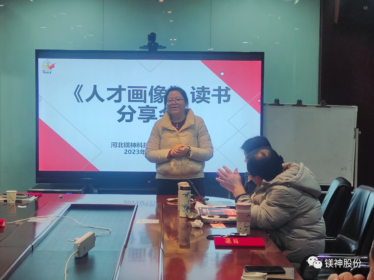 2023年12月30日,為打造學(xué)習(xí)型組織,提升組織學(xué)習(xí)能力,河北鎂神科技股份有限公司在二樓會議室舉辦了一場別開生面的《人才畫像》讀書分享會。公司孫總、部長級以上人員等共聚一堂,共同分享了對這本書的學(xué)習(xí)心得,以及如何運(yùn)用書中的知識到實際的招聘和人才培養(yǎng)中。