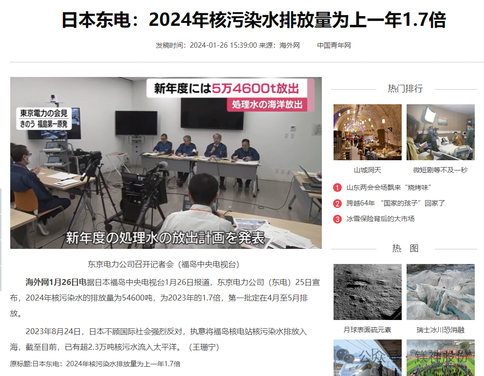 而自去年8月24日以來,日本不顧國際社會強烈反對,執意將福島核電站核污染水排放入海,截至目前,已有超2.3萬噸核污水流入太平洋。