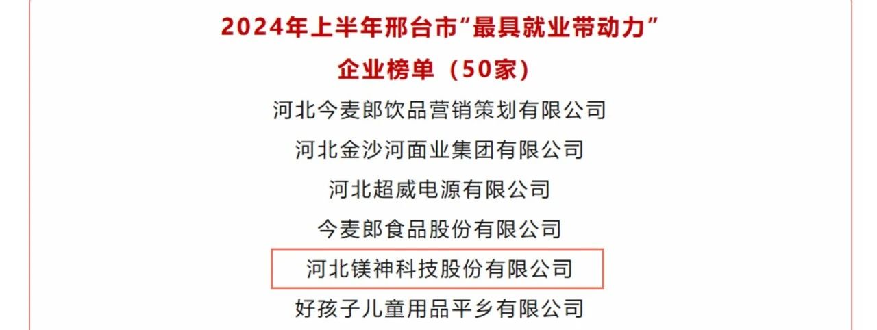 河北鎂神科技股份有限公司榮譽上榜
