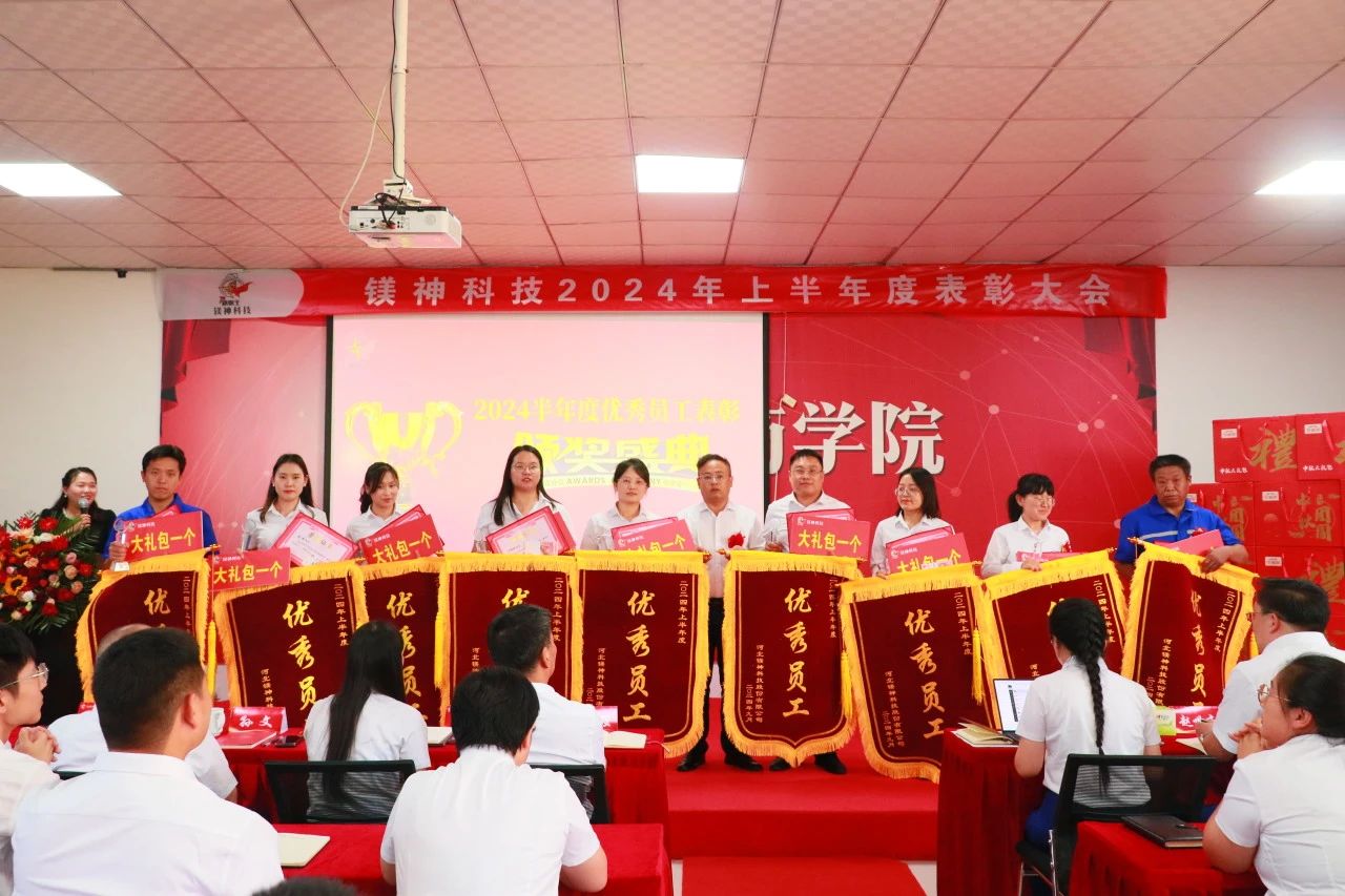 2024年9月18日,在這碩果累累的季節,河北鎂神科技股份有限公司舉辦了一場隆重的半年度表彰大會。本次大會不僅總結了公司上半年度的輝煌成就,還對表現突出的員工和團隊進行了慷慨的獎勵。此次表彰大會的獎金總額高達175.98萬元,其中包括:優秀表彰共44.9萬元,鎂神英雄獎1萬元,優秀團隊及特殊貢獻獎共計83萬元,2023年外貿提成及市場獎勵47.08萬元。這些豐厚的獎勵不僅是對優秀員工的肯定,更是對未來拼搏的激勵。