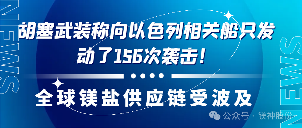 央視新聞消息,當地時間5月9日,也門胡塞武裝發言人葉海亞·薩雷亞發表電視講話稱,胡塞武裝對多艘與以色列有關船只進行了打擊。而此前有數據指出胡塞武裝稱向以色列相關船只發動了156次襲擊!5月3日,胡塞武裝宣布:行動升級,將襲擊范圍擴至地中海,所有向以色列輸送貨物的船只發起襲擊,此次沖突升級后對歐洲乃至全球鎂鹽供應產生巨大影響。特別是死海化學溴業有限公司(DEAD SEA BROMINE COMPANY LTD),作為全球的鎂鹽供應商之一,此次攻擊導致該區域鎂鹽供應中斷,給全球多個行業帶來巨大沖擊。